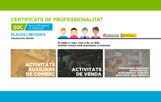 Obertes les inscripcions als cursos de certificat de professionalitat del Servei d'Ocupació de Catalunya. Si estàs a l'atur, vine a fer un dels nostres cursos amb pràctiques a empresa: Activitats auxiliars de comerç Activitats de venda Operacions auxiliars de [...]