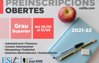 Preinscripció oberta pels cicles de grau superior: Del 25 al 31 de maig de 2021. No t’oblidis de realitzar la preinscripció als cicles de grau superior: Administració i Finances Comerç Internacional Màrqueting i Publicitat Sistemes Electrotècnics i Automatitzats Més [...]